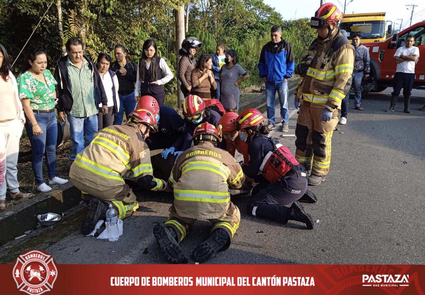 Por llamado del ECU-911, la unidad se dirigió al sector de la gasolinera Las Américas vía Tena, una vez en el lugar se confirma la colision entre dos vehiculos automóviles pequeños de los cuales resultan heridas dos personas las mismas que son trasladadas por la unidad A25 del MSP y la otra por la unidad A5 del Cuerpo de bomberos con la paciente de nombre: M. F. G. de 32 años de edad quien es valorada y trasladada con un TEC leve hacia el Hospital del IESS Puyo donde recibe el médico de turno.